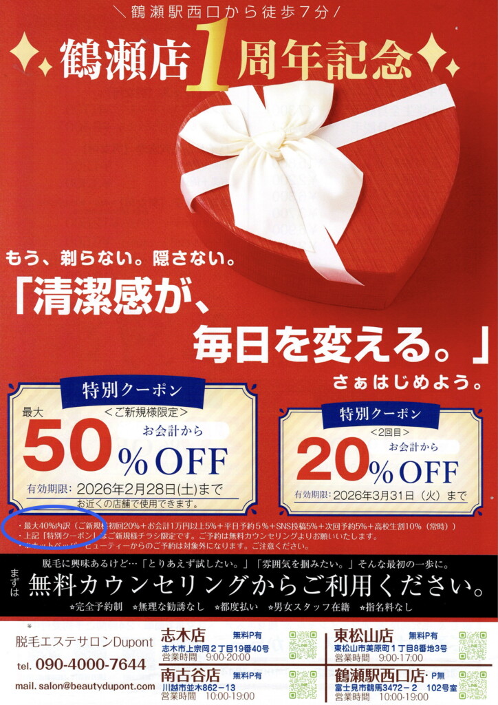 2026年_初回チラシ(鶴瀬店1周年記念)
